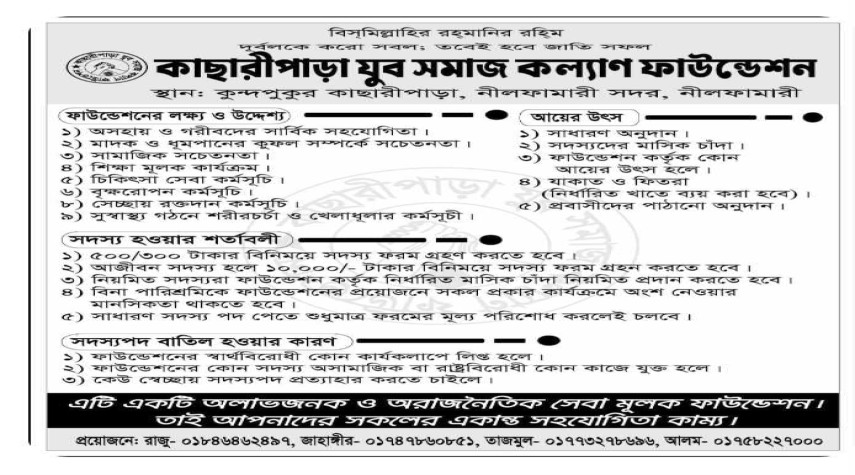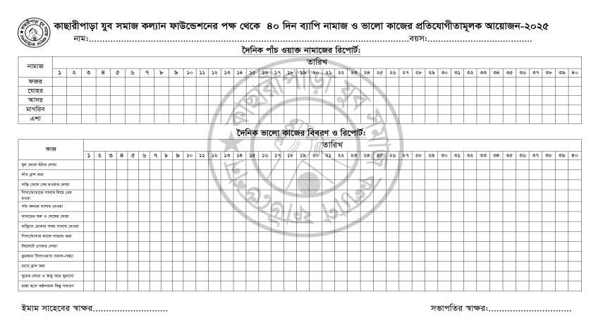 চল্লিশ দিন ব্যাপি জামাতে পাচ ওয়াক্ত নামাজ আদায় ও ভালো কাজের প্রতিযোগিতা মূলক আয়োজন। পপুরস্কার দুটি বাইসাইকেল,পাঞ্জাবি, বোরকা ও আকর্ষনীয় পুরস্কার।
